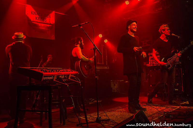 Das zweite Knack den Krebs Charitykonzert in diesem Jahr und das 9. insgesamt fand im Knust statt. Wie immer eröffnete Initiator » Falco den Abend. Danach ging es mit bester Musik von Gløde, » Ann Sophie, Jonathan Kluth, » Benne, Berge, Odeville und Julian Le Play weiter. Zum Abschluss sangen alle zusammen "Stand By Me" von Ben E. King.